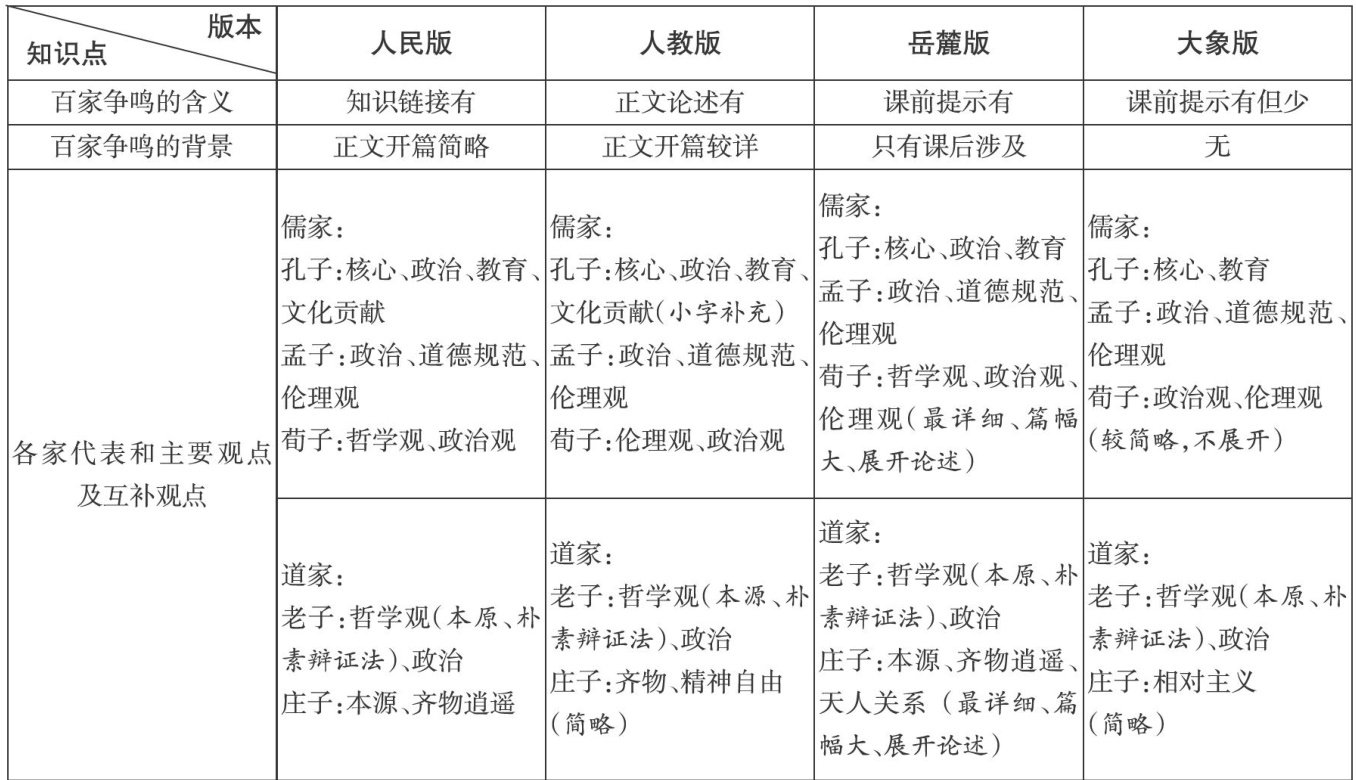 以“百家争鸣”为例探讨四个新课标高中历史教材版本的使用
