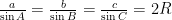 如图,在△ABC中,若三个内角的对边分别为 a,b,c 则 ,这就是正弦定理.其中 R 为ΔABC 外接圆的半径.
