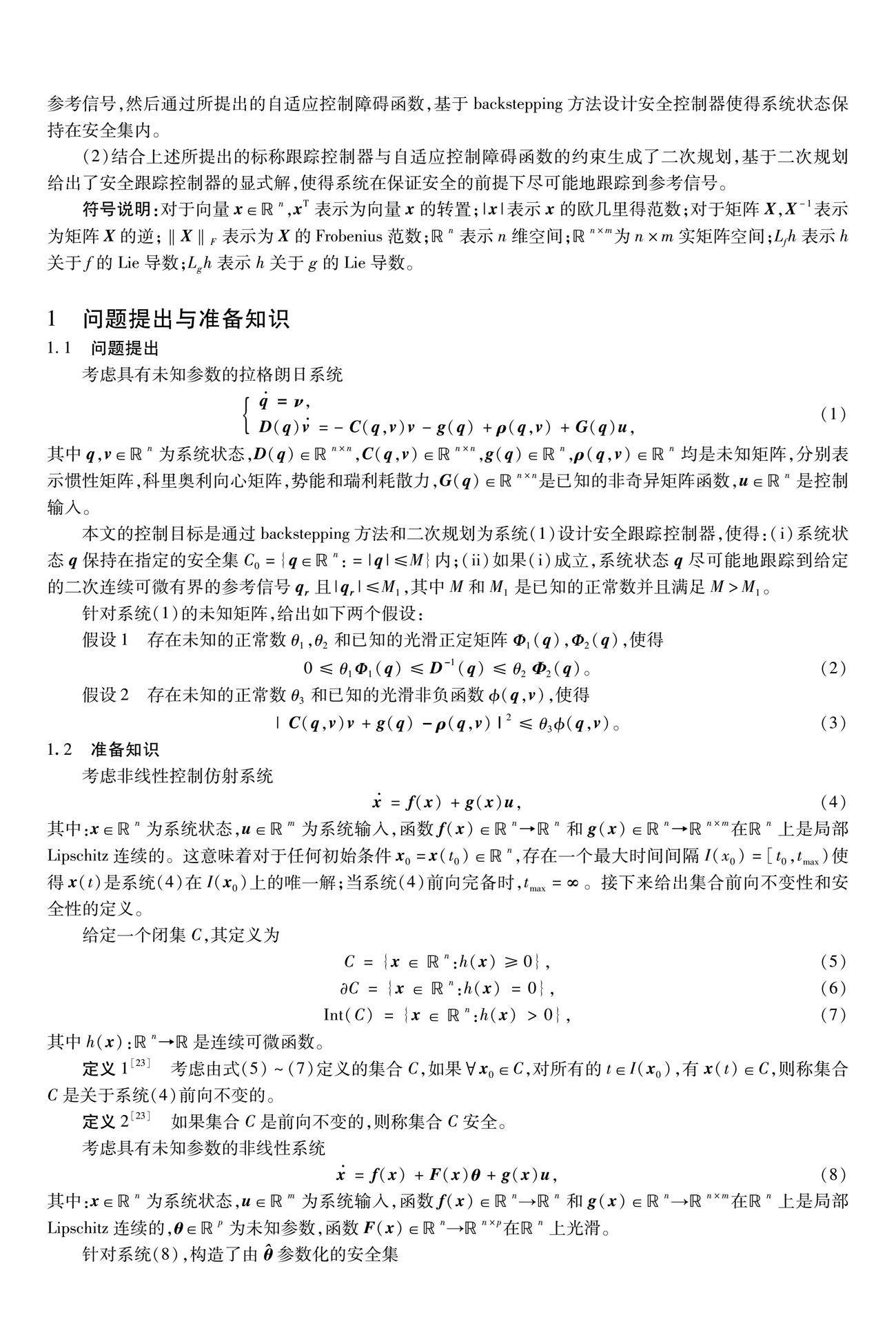 具有未知参数的拉格朗日系统的安全跟踪控制