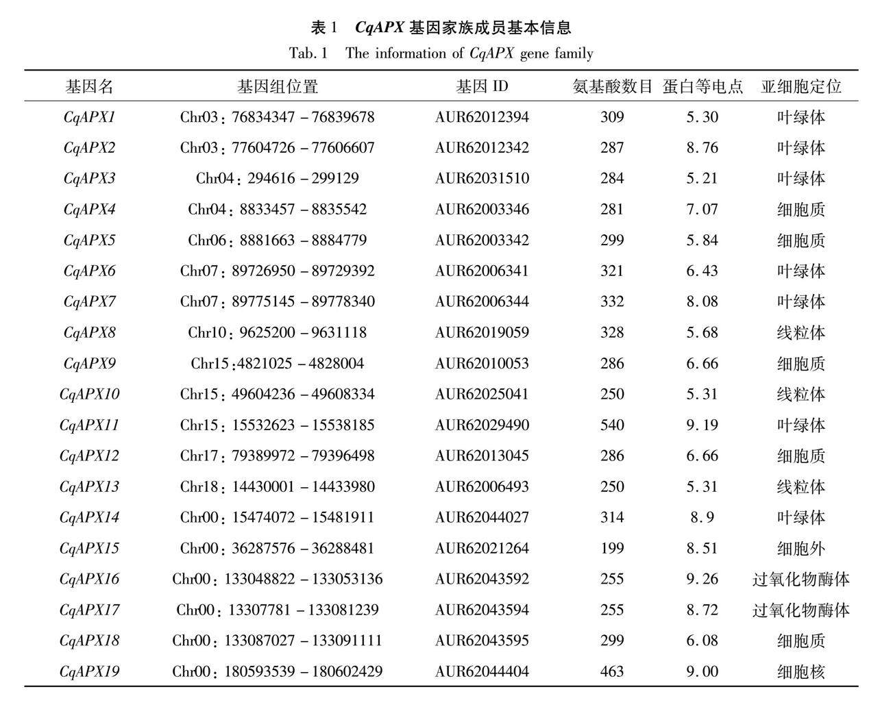 藜麦抗坏血酸过氧化物酶基因(CqAPX)家族生物信息学与表达模式分析