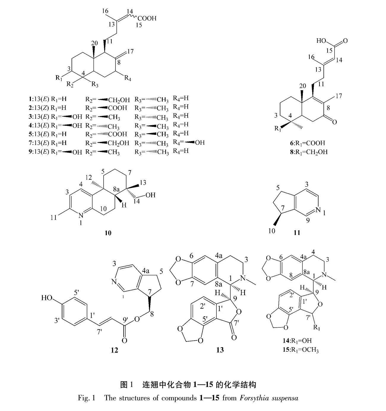 连翘半日花烷型二萜和生物碱类化合物及其抗病毒活性