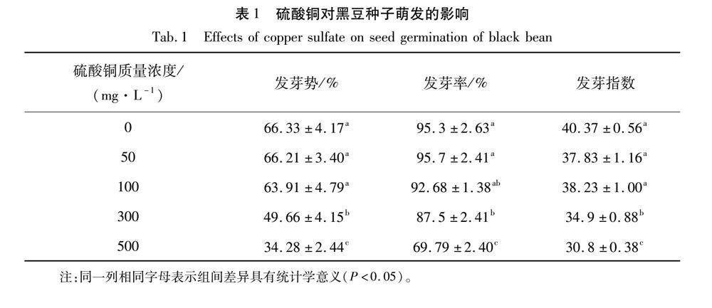 硫酸铜对黑豆种子萌发和幼苗生长的影响