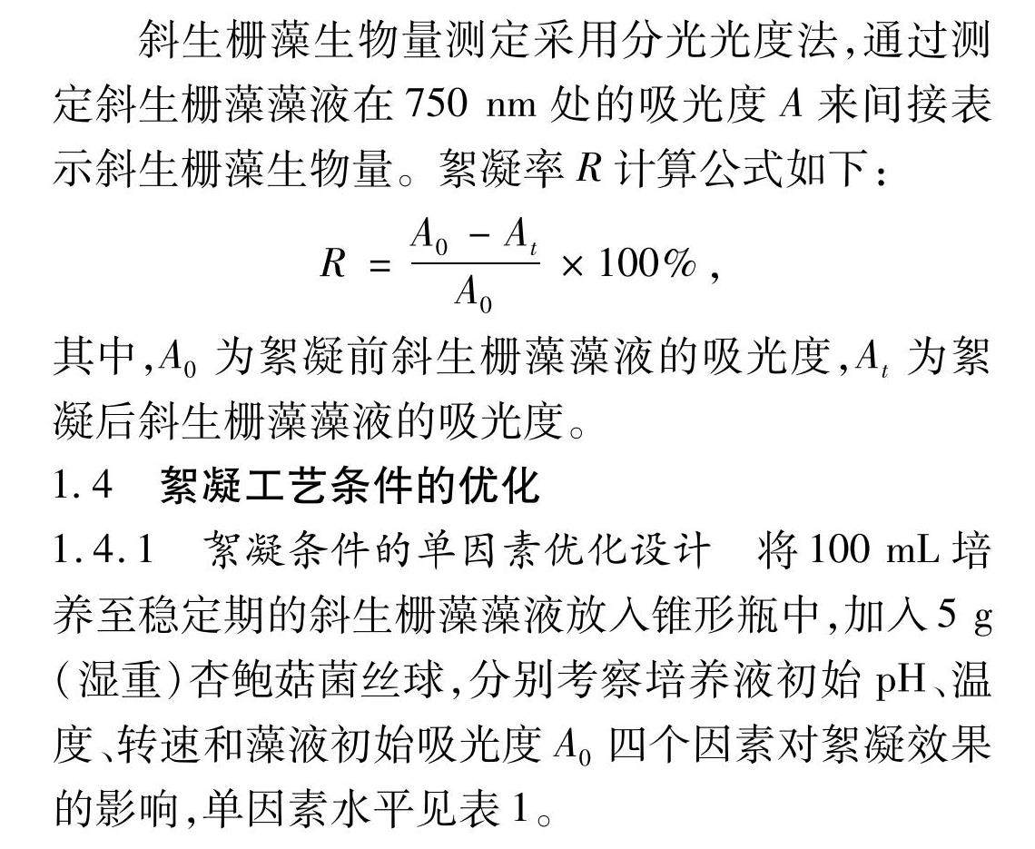 杏鲍菇生物法絮凝斜生栅藻的工艺优化和絮凝机制