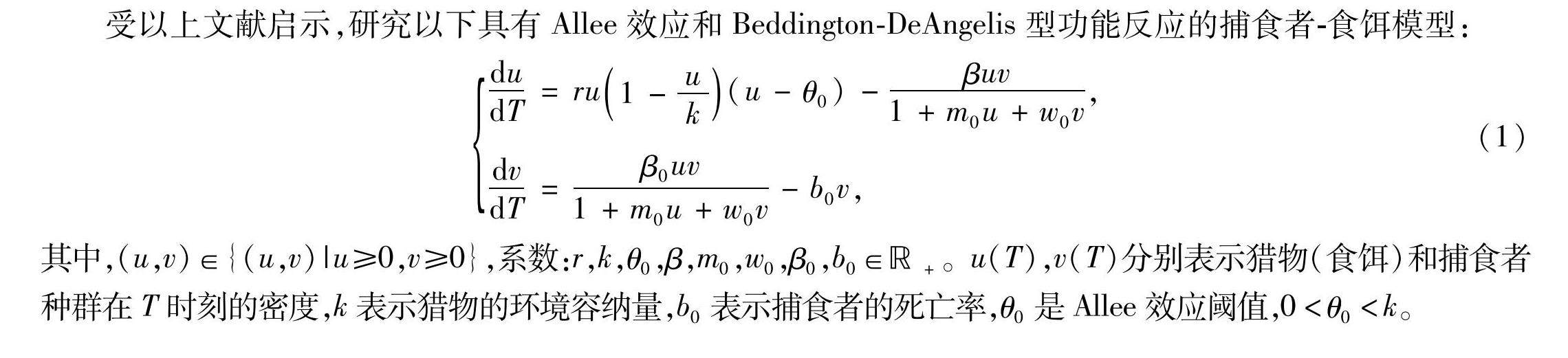 关键词: 捕食者-食饵模型;时滞;Allee效应;Beddington-DeAngelis型功能反应函数