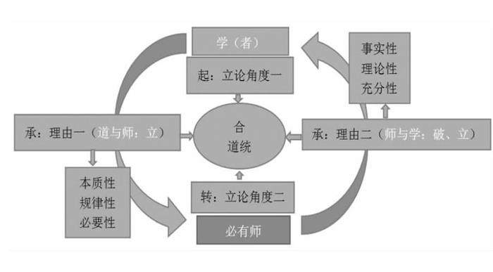 摘要:《师说》是传统思辨性作品名篇,篇章既合乎现代论述文的规范要求,又合乎逻辑充足理由律的要求。全文分别从观点“学必有师”的概念组成“学”与“必有师”这两个立论角度出发,先论证必要性理由,再论证充分性理由,最后站在得“行古道”的高度总结全文,起承转合,形成逻辑闭环。其不足是缺少“承认”环节的内容,立论角度的转换不明显,使得下文的思辨缺少思维的根据。(剩余6671字)