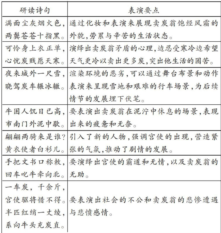《卖炭翁》是唐代诗人白居易的著名诗作,具有深远的社会意义和文学价值。当下的教学多以反复朗读、对话交流,从分析讲解的角度引导学生理解诗歌的内容、情感以及对当时社会的批判,这样的教学可以达到对诗歌的基本理解,但过于注重知识的传授和历史资料的介绍,对诗歌的理解止步于标签式的分析,缺乏深度体验。