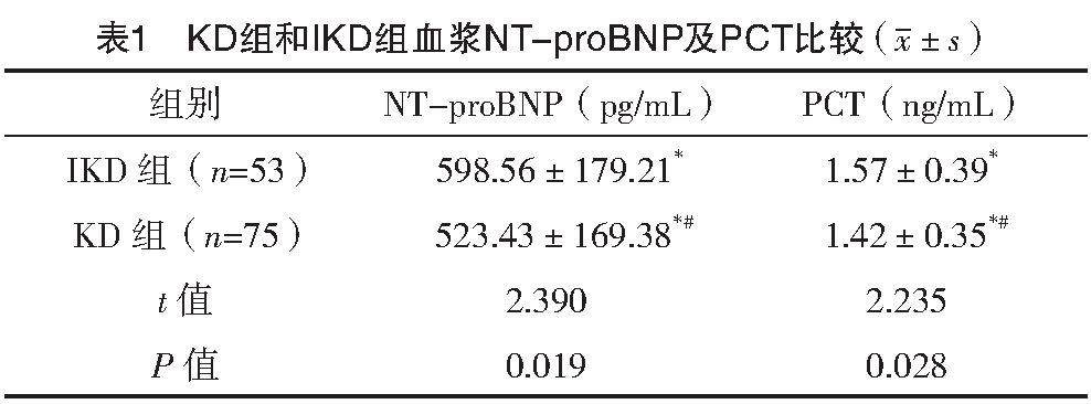 【摘要】 目的:研究氨基末端脑钠肽原(NT-proBNP)及降钙素原(PCT)在诊断不完全川崎病(IKD)中的应用。方法:选取2020年1月—2021年12月江西省儿童医院收治的川崎病(KD)患儿128例为研究对象,按照临床诊断标准分为KD组(n=75)和IKD组(n=53)。根据心脏彩色多普勒超声确认有无冠状动脉损害将IKD患儿分为冠状动脉损害组(n=29)和无冠状动脉损害组(n=24)。(剩余8095字)
