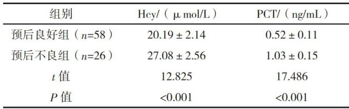 不同预后脑梗死患者Hcy、PCT及凝血功能指标的变化及临床意义
