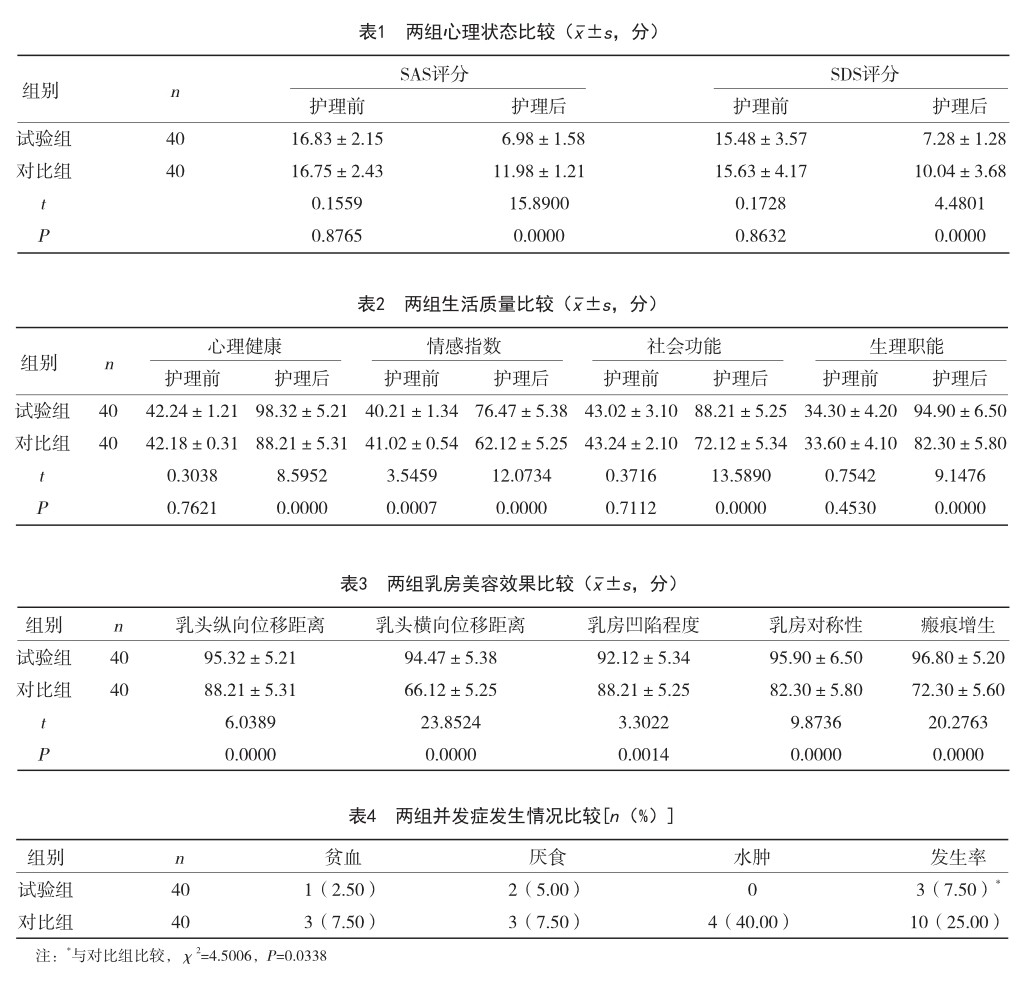 预见性护理对乳腺癌整形保乳术患者术后并发症及乳房美容效果的影响