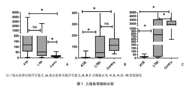 结合分枝杆菌感染者辅助性Th2型细胞因子IL-4、IL-6、IL-10的水平变化