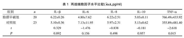 细胞因子联合凝血指标在孕妇胎膜早破诊断中的作用