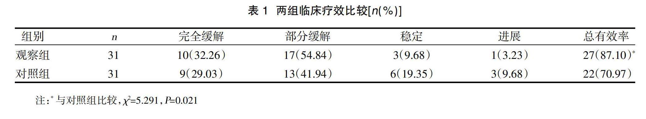 摘要:目的 研究扶正解毒汤辅助克唑替尼对晚期非小细胞肺癌患者临床疗效及对肿瘤标志物水平的影响。方法 选取2020年3月-2021年3月在我院诊治的62例晚期非小细胞肺癌患者为研究对象。采用随机数字表法分为对照组和观察组,各组31例。对照组采用克唑替尼治疗,观察组在对照组基础上应用扶正解毒汤治疗。(剩余8677字)
