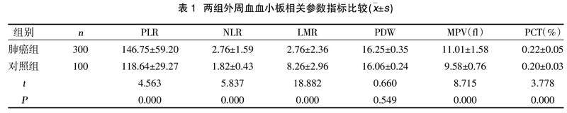 NSCLC患者外周血血小板相关参数与临床病理特征的关系