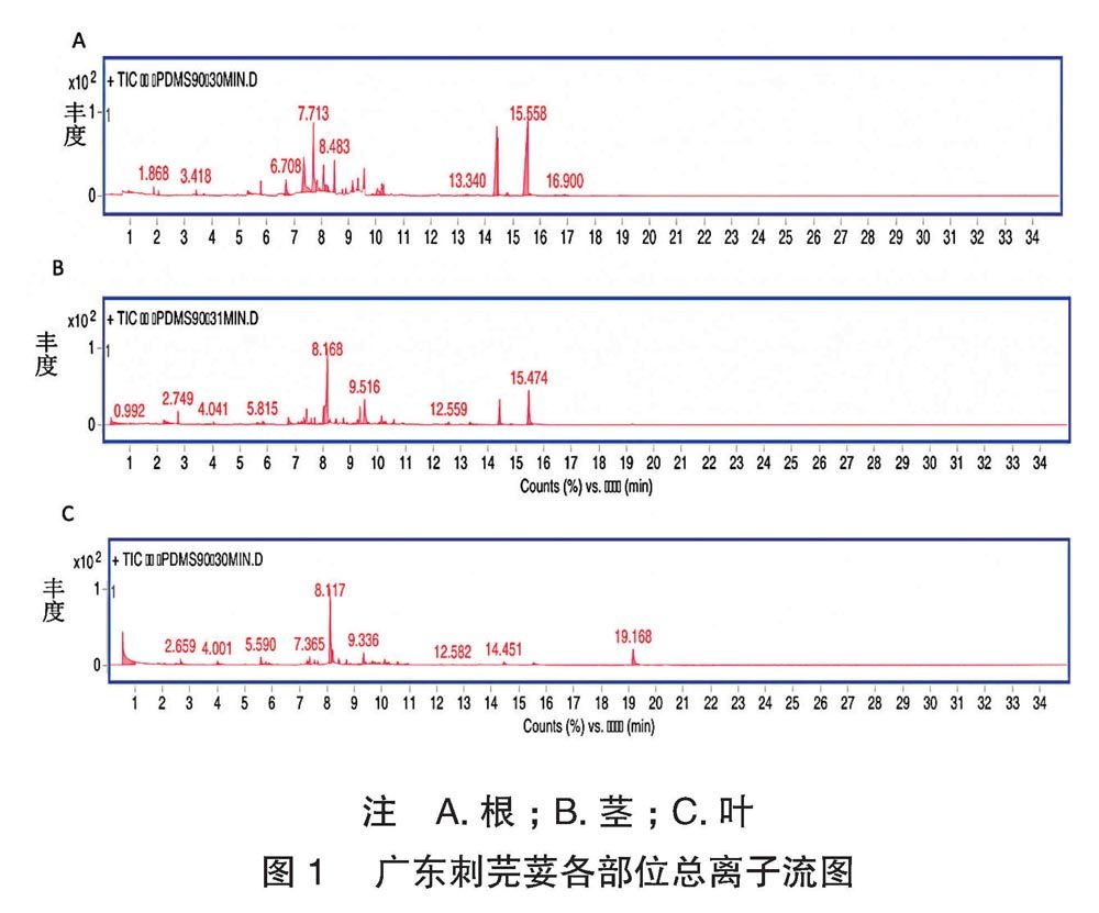 HS-SPME-GS-MS分析 广东刺芫荽不同部位挥发性成分