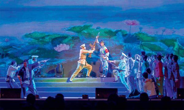 中国民族歌剧《洪湖赤卫队》创作于1958年,以湖北洪湖地区为背景,通过歌剧表演的形式,讲述了以韩英为代表的共产党人为中国人民的解放事业与国民党反动派殊死搏斗的英勇故事。