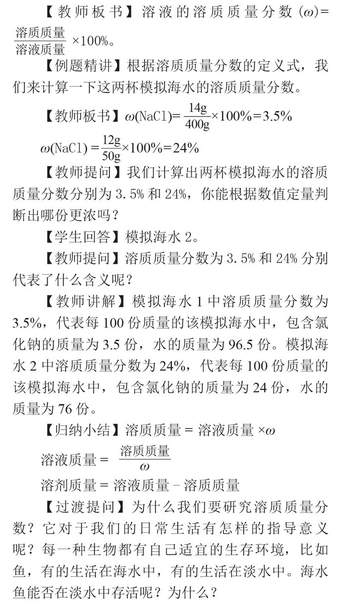 摘 要:教师利用身边常见的物质——海水,创造真实的生活情境,通过“海水初印象—海水再认识—海水再探究—海水共保护”的流程组织学习教学活动,让学生在逐步深入了解海水的过程中,掌握溶质质量分数的计算方式、重要意义以及浓溶液和稀溶液之间的转换方法,让学生在解决有关海水的问题的过程中,了解溶质质量分数与日常生活的关系,逐步学会分析生活中的化学问题,并利用化学知识解决相关的实际问题。(剩余5265字)