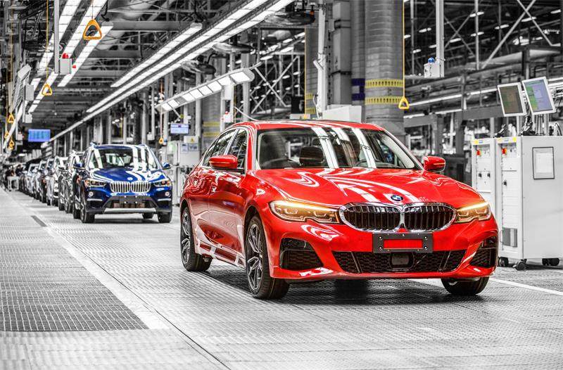 2019年5月7日在华晨宝马沈阳铁西工厂拍摄的即将下线出厂的车辆。