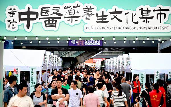 9月7日晚,在安徽省亳州市建安文化广场举行的“华佗中医药养生文化集市”主题活动上,医务人员为市民免费健康义诊。