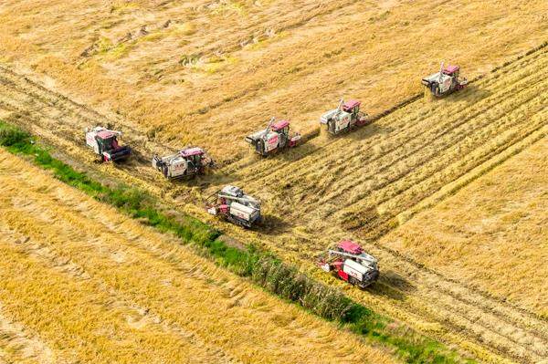 10月30日,江苏省宿迁市泗洪县车门乡5万亩水稻进入丰收季,为提升收割效率与效果,该乡迅速组织农机服务队深入各村组,开启秋收抢收工作。