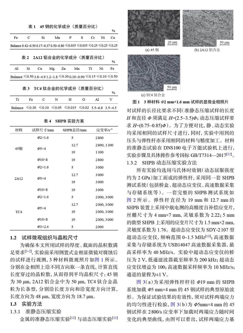 基于SHPB 技术测试典型金属动态压缩性能的尺寸效应分析
