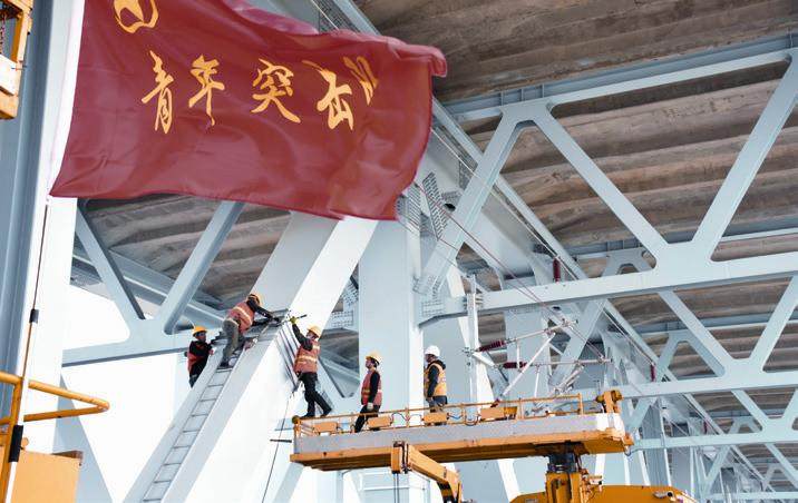 图 | 中铁电气化局青年突击队奋战在郑济线黄河大桥接触网施工作业中