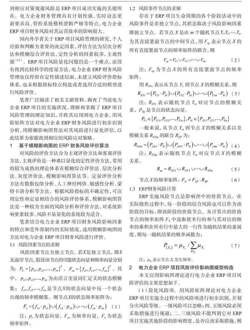 [关键词]ERP;财务风险;模糊影响图;风险评估