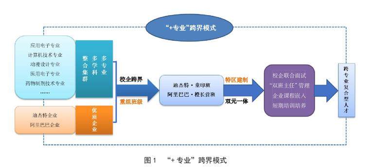 [摘 要]本文紧密围绕校企合作过程中出现的校企割裂、工学分离、专业孤立的问题,通过采取特区建制、定制课程、综合项目、四方共评的方法,重点研究了多专业多学科整合集群的“+专业”和主干专业与拓展方向交叉绑定的“专业+”的双元一体、两翼并行的“大跨界”复合型人才培养模式。