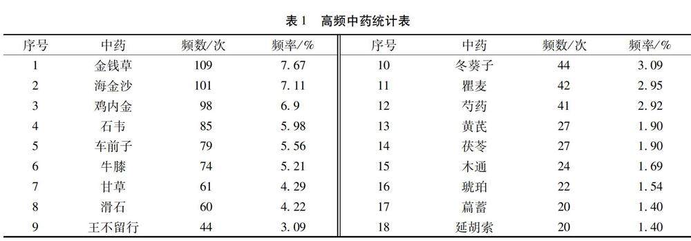 基于数据挖掘的中药治疗泌尿系结石用药规律分析