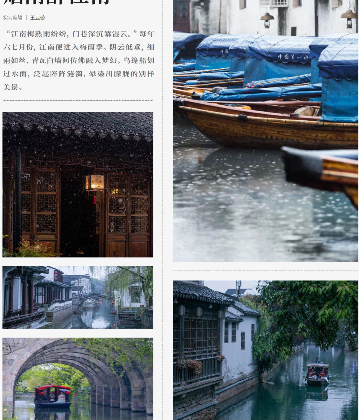 “江南梅熟雨纷纷,门巷深沉羃湿云。”每年六七月份,江南便 进入梅雨季。阴云低垂,细雨如丝,青瓦白墙间仿佛融入梦幻。(剩余33字)