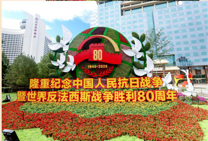 近日,纪念中国人民抗日战争暨世界反法西斯战争胜利80周年主题花坛在北京长安街沿线亮相。从建国门至复兴门,10座花坛跨越了80余(剩余63字)