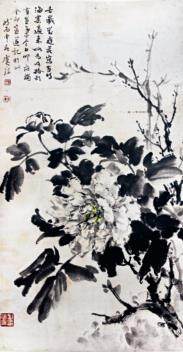 近日得缘见到一幅墨画白牡丹图,纸本,尺寸为67厘米×33.5厘米(图1)。