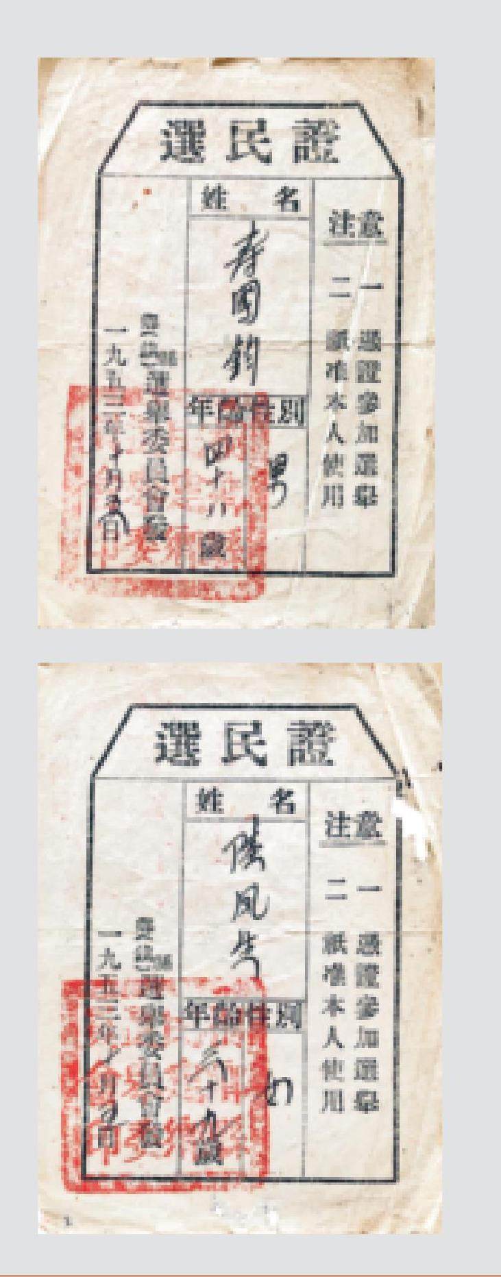 浙江桐乡老唱片收藏家、留声阁主人寿小钧一直保留着他父母生前参加人民代表选举的选民证。在这几张已经泛黄的选民证中,最早的一张诞生于1953年。它见证了中国历史上第一次规模庞大的普选,标志着中华人民共和国在实现民主政治方面迈出的重要一步。