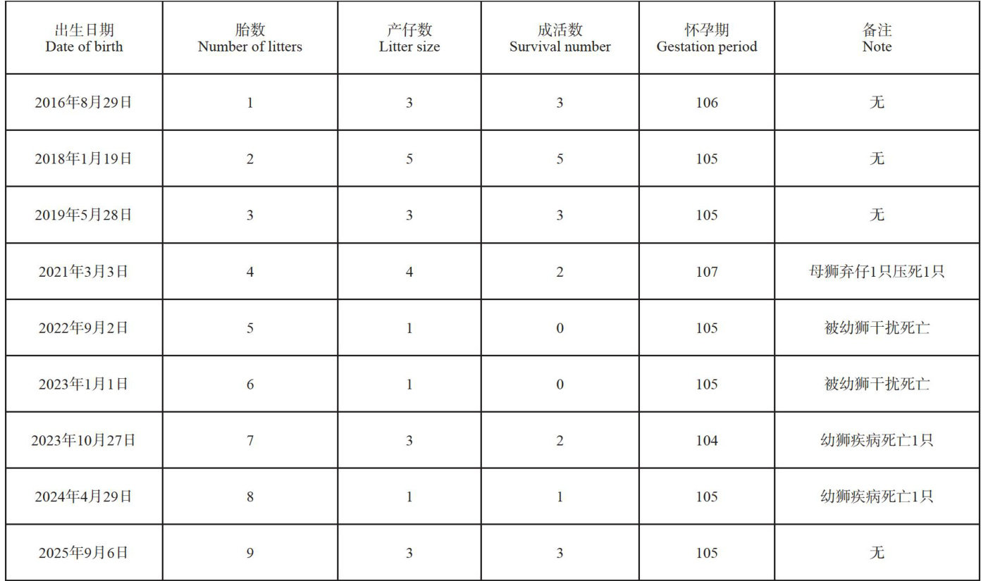 圈养条件下一只生产9胎的非洲狮