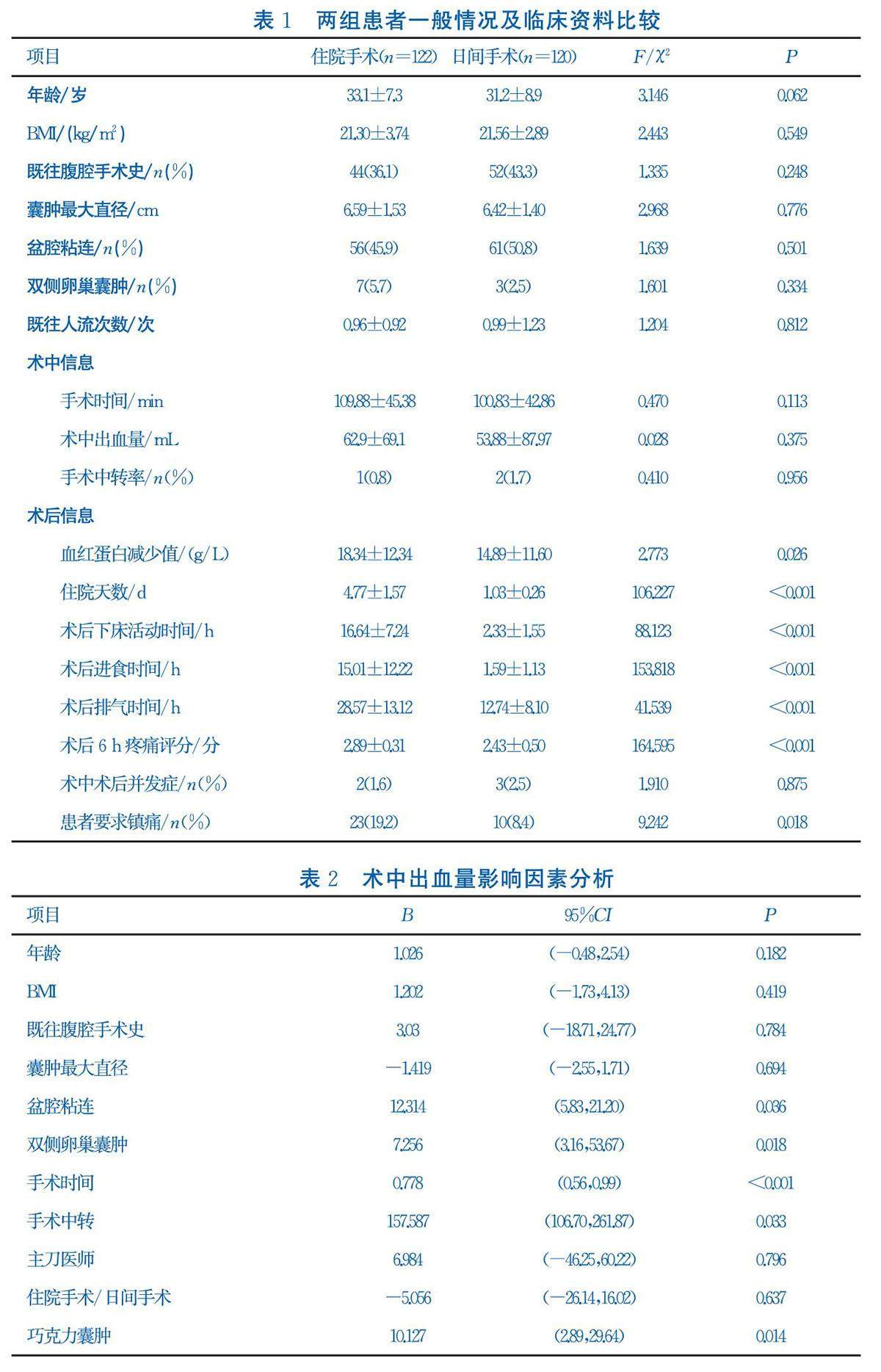 基于ERAS的卵巢良性囊肿日间手术可行性及安全性分析