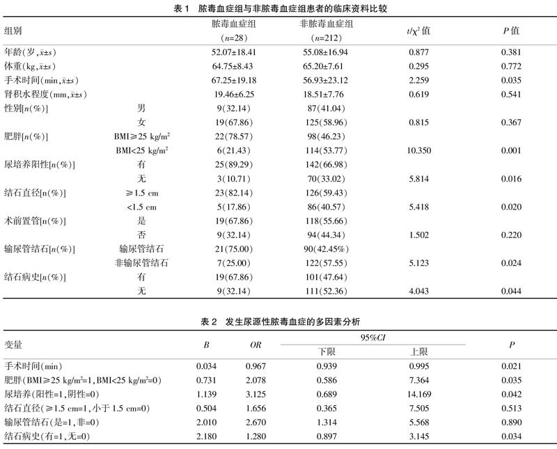 经尿道输尿管软镜碎石术后发生尿源性脓毒症的危险因素