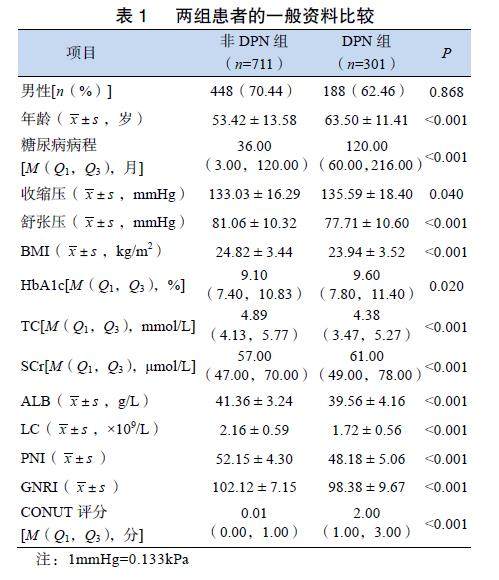 营养风险指标与T2DM患者周围神经病变的相关性研究