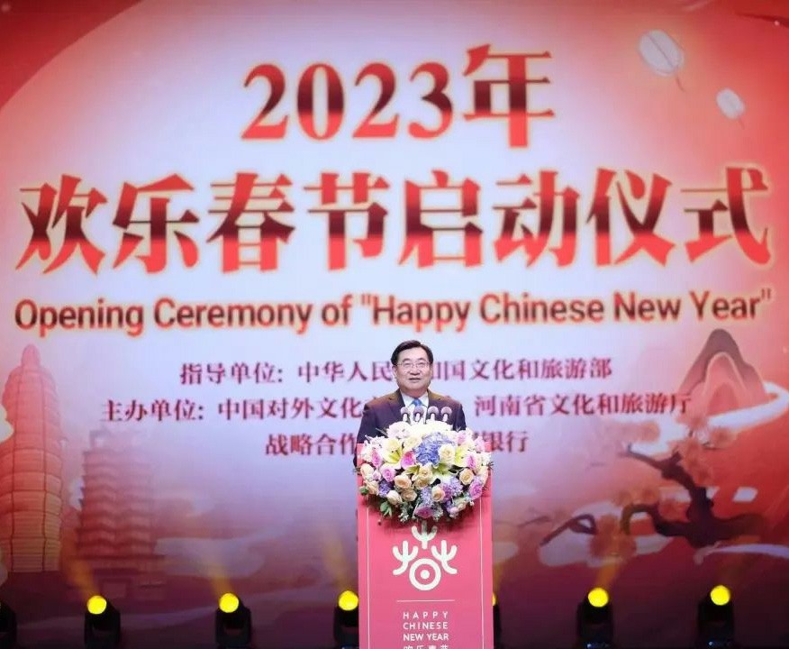 1月14日,2023年“欢乐春节”全球活动启动仪式暨“欢乐春节?和合共生”音乐会在河南郑州举行。文化和旅游部部长胡和平致辞并宣布活动启动,河南省省长王凯出席活动并致辞。