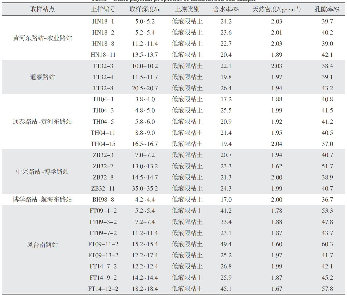 Abstract:Inorder toclarifythe thermophysical properties of clayin Zhengzhou Metro Line xand its influenceon the project,undisturbed claysamples werecolected at diffrent stationsof the line,and indoor geotechnical ests and thermophysical parameter tests were caried out.Among them,the thermal conductivity is measured by DRPL-I thermal conductivity tester,the specific heat capacity is measured by BRR type specific heat capacity tester,and thethermalconductivityisobtained bycalculation.Theregressionanalysis of thermal conductivityand conventional geotechnical parameters(natural densityand porosity)wascarriedout.Theresultsshowedthat there was a strong correlation between thermal conductivityand natural densityand porosity,and thecorelationcoefficients were 0.8433andO.8342,respectively.The specific performance is thatthe thermal conductivity increases with the increase of natural density and decreases with the increase of porosity.