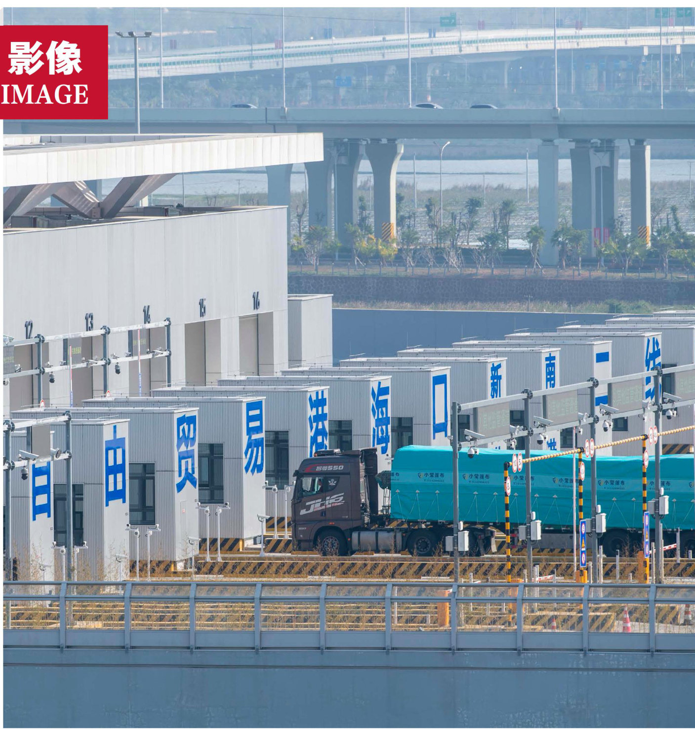 2025年12月18日,海南自贸港正式启动全岛封关,在海口新海港和南港“二线口岸”(货运)集中查验场,第一批货物正在通过海关监管通道。(图源:视觉中国)