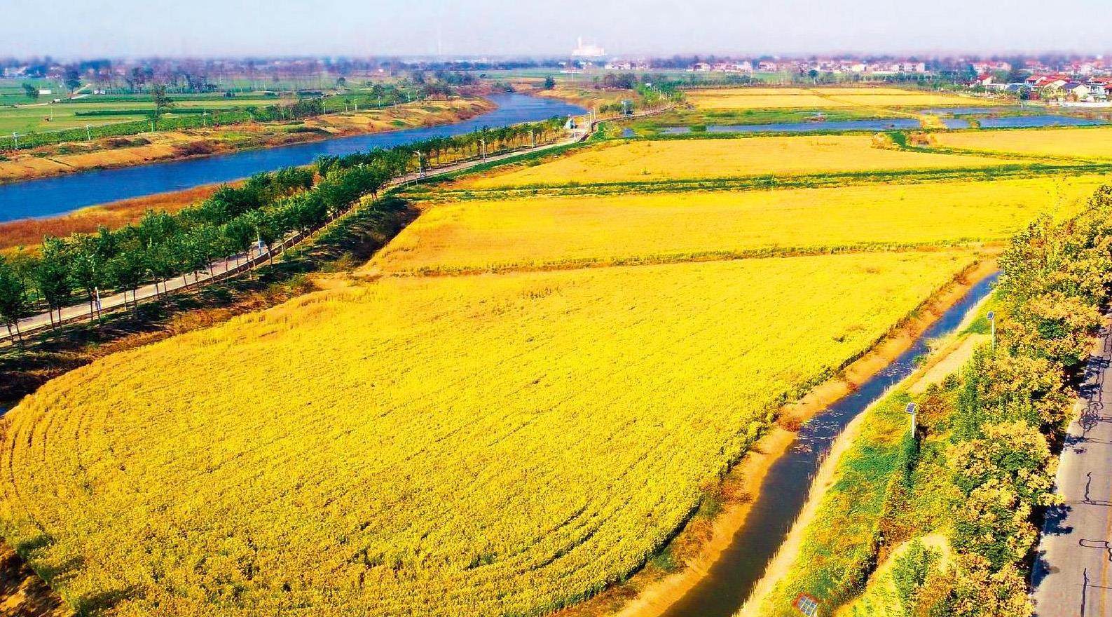2023年11月12日,带着疑惑,记者来到了位于睢县五河湾乡村振兴产业示范中心小杨庄村,目之所及,金灿灿的水稻被水沟环绕,微风拂过稻谷飘香,一条条鲤鱼在稻下穿梭,勾勒出一幅“稻在水中长,鱼绕稻边游”的灵动和谐生态画卷。