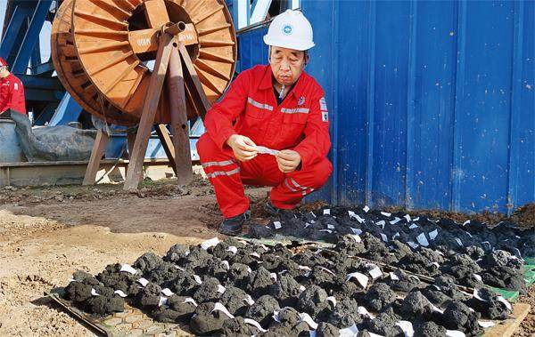 下,在新疆维吾尔自治区塔城地区的戈壁滩上,张红光守在钻井平台上,目光紧紧盯着钻杆的起落,一边向新同事讲解,一边在笔记本上记录钻杆下探深度。