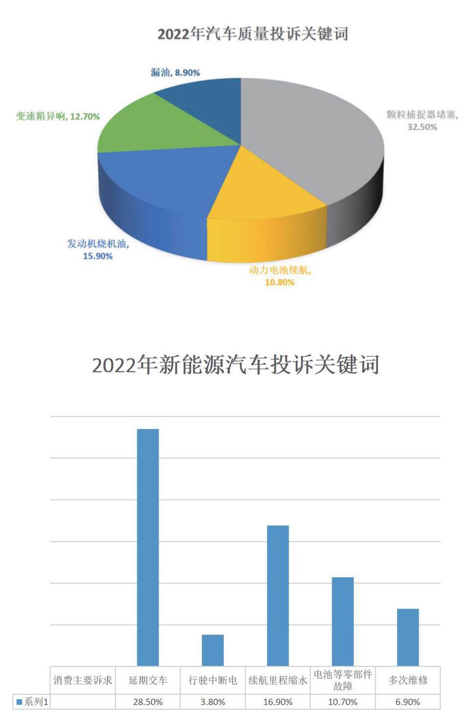 记者近日对中国质量万里行消费投诉平台2022年相关投诉数据梳理后发现,汽车类投诉主要涉及车辆质量、销售合同、二手车、售后服务和信息安全等多个方面。按照投诉质量问题分析,颗粒捕捉器堵塞、动力电池续航、油耗、变速箱异响、漏油成了关键词。(剩余1897字)