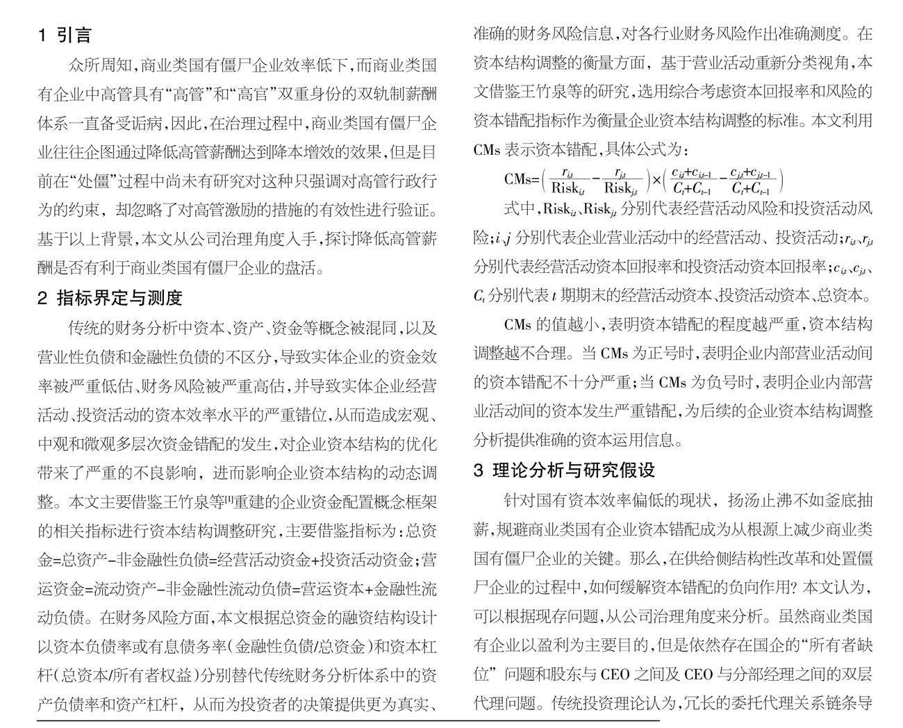 高管薪酬、资本错配与商业类国有僵尸企业的企业绩效