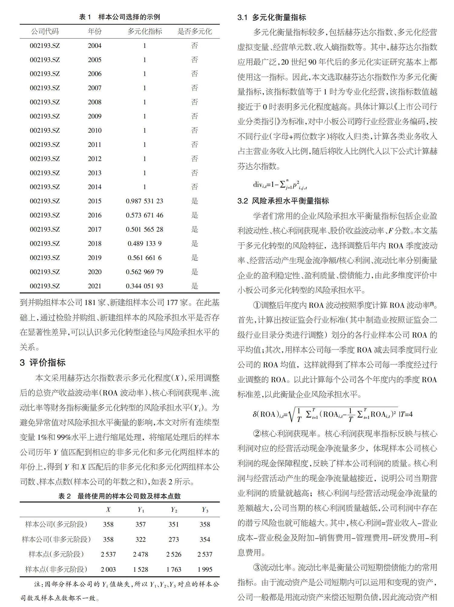 【摘 要】中小板公司是我国中小企业中的优质群体,其中大部分公司已成功实现了多元化经营。论文以单一业务向多元化转型的中小板公司为研究样本,统计分析多元化转型及转型途径与企业风险承担的关系。统计结果显示,中小板公司多元化转型后的盈利波动性增大、短期偿债能力下降、盈利质量则有所改善,说明多元化转型加重了公司风险承担,公司则通过提升盈利质量以减轻风险承担;相比新建途径,采用并购途径的公司风险承担更重。(剩余4148字)