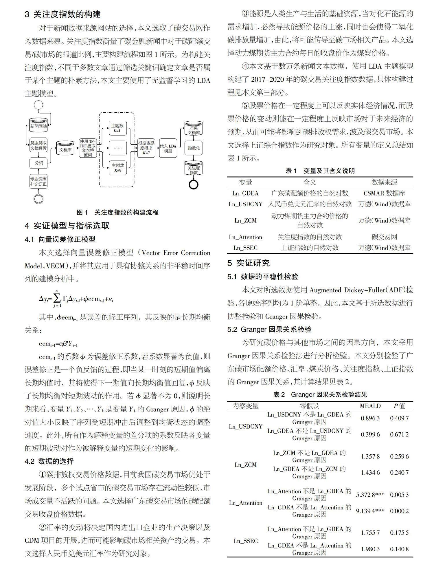 【摘 要】论文通过选择广东碳交易试点公布的碳交易价格作为样本,运用VEC模型探讨了广东试点碳价格的影响因素。为了加入市场层面对碳价格的影响,论文基于上万条新闻文本数据,使用LDA主题模型构建了2017-2020年的碳交易关注度指数。研究结果表明:目前我国碳交易市场还未形成规律性的市场机制,煤炭价格、汇率及上证指数对于碳价格的影响较小,而关注度的变化则会显著影响碳价格的变动。(剩余4453字)