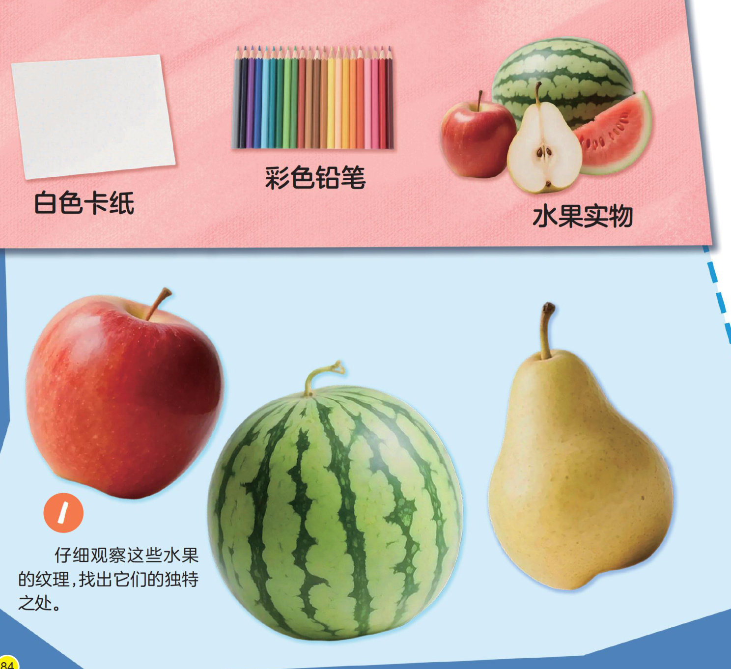 今天我们要为水果朋友们来一次超级大变身,带上你们的“放大镜”仔细观察,让苹果王子披上草莓的星星斗篷,帮鸭梨姐姐换上西瓜的条纹蓬蓬裙!