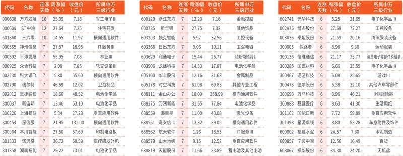 本周连涨天数居前个股
