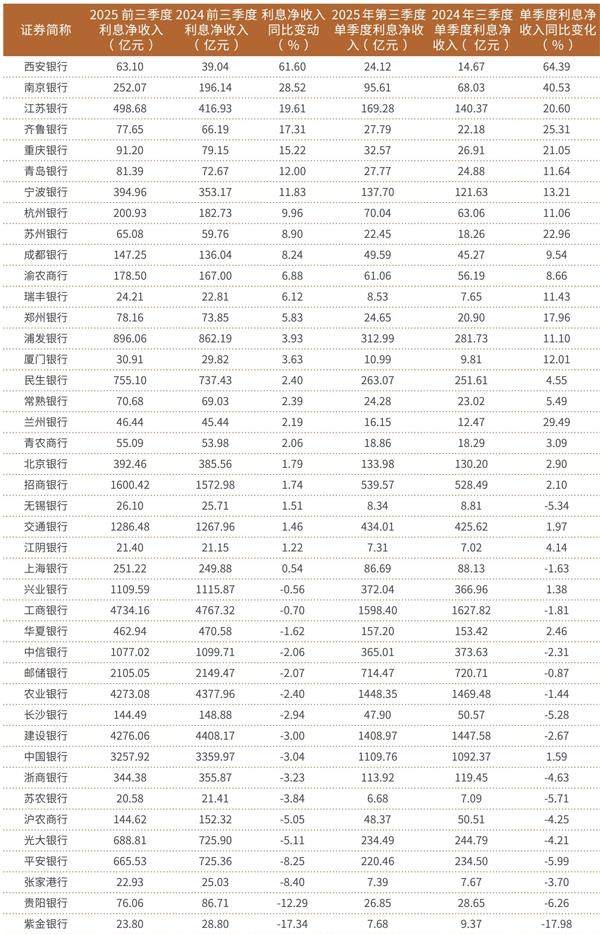 截至10月底,A股42家上市银行均已发布了2025年三季度业绩报告。尽管没有年报以及半年报详尽,但依然能反映出过去一个季度银行经营业绩的变化。