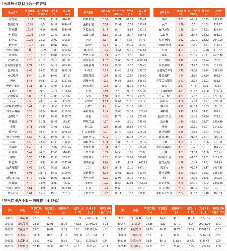 一周市场热点及重点板块个股表现(剩余13字)