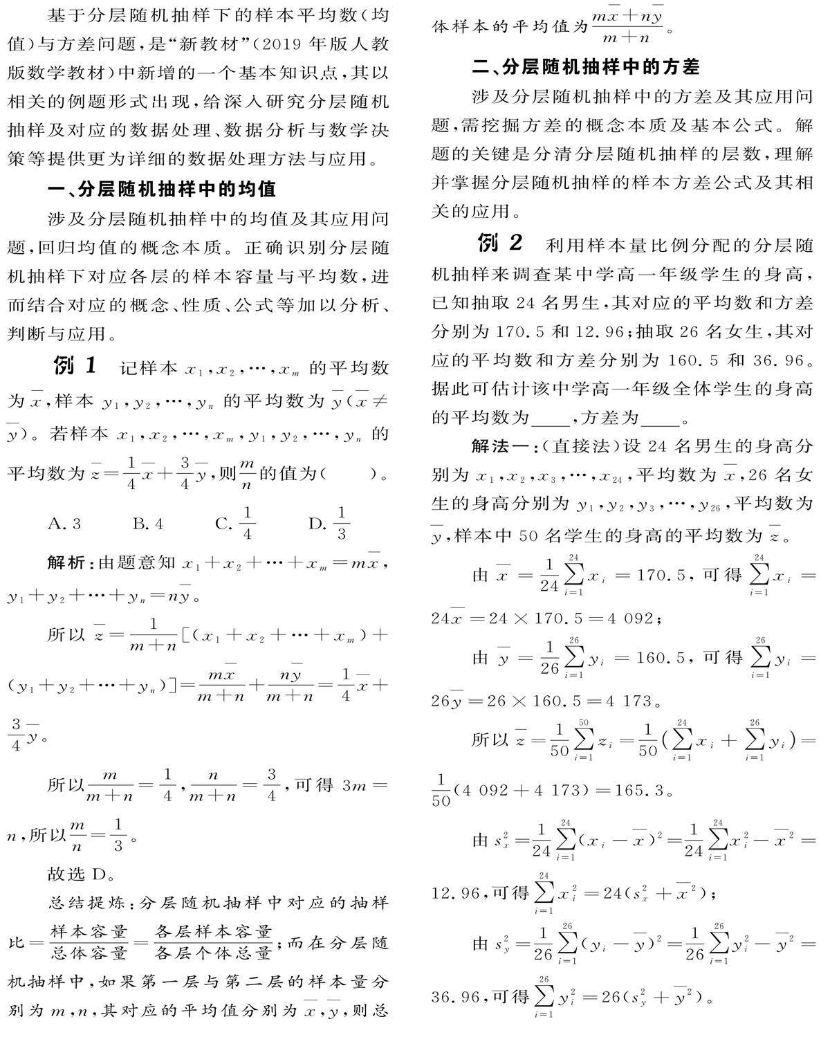 基于分层随机抽样下的样本平均数(均值)与方差问题,是“新教材”(2019年版人教版数学教材)中新增的一个基本知识点,其以相关的例题形式出现,给深入研究分层随机抽样及对应的数据处理、数据分析与数学决策等提供更为详细的数据处理方法与应用。(剩余0字)